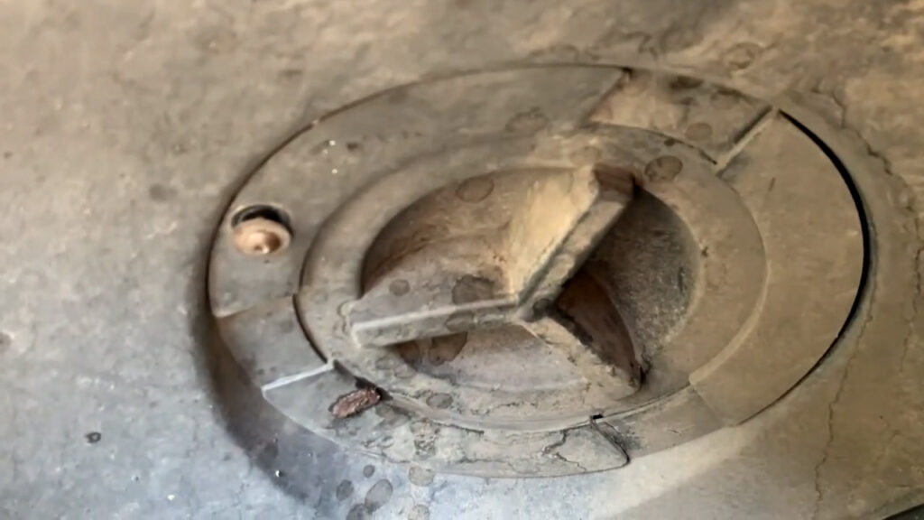 The cover is a circle piece of plastic held in place with a single screw. You will need an Allen wrench to remove the screw.