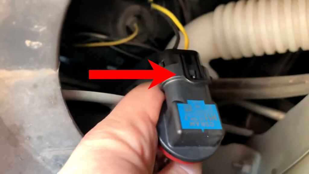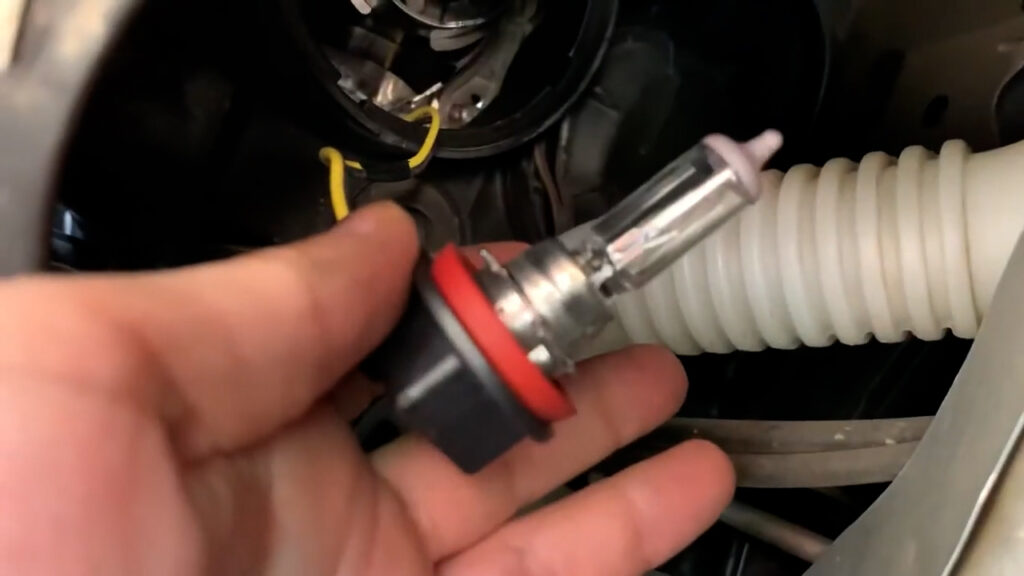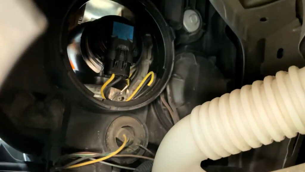 Now that the headlight is removed unclip the connector on the back. There is a small clip that you release to remove the old bulb.